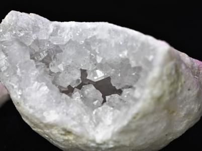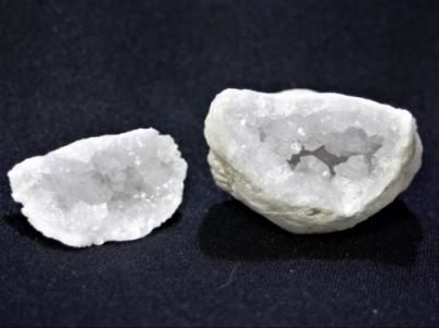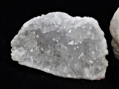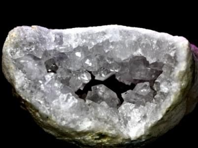 外観は何の変哲もない只の白っぽい石なのですが、内側は粉砂糖のような水晶の結晶でビッシリと覆いつくされています。