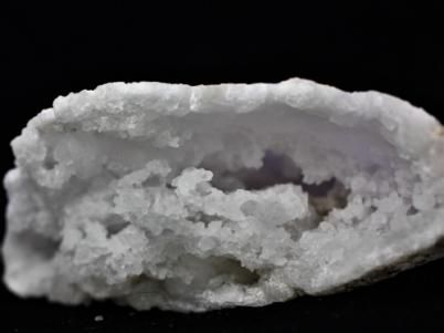 外観は何の変哲もない只の白っぽい石なのですが、内側は粉砂糖のような水晶の結晶でビッシリと覆いつくされています。